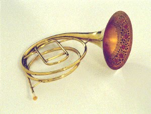 Au début du XIXème siècle les pavillons des cors (français surtout) furent très souvent peints de somptueuses décorations : des motifs chinois ou antiques sous l'Empire, des guirlandes de fleurs (des roses en majorité, l'Impératrice Joséphine avait lancé le goût pour cette fleur et son peintre, Jean Joseph Redouté publiait ses fameuses "Roses") sous la Restauration.mercredi 5 mai 2010